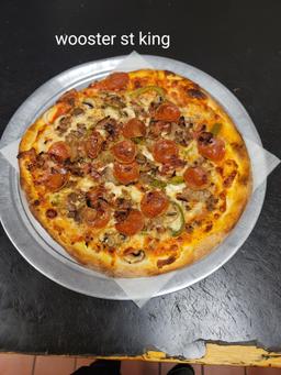 White or red sauce with ricotta cheese and mozzarella, and your choice of three regular toppings.